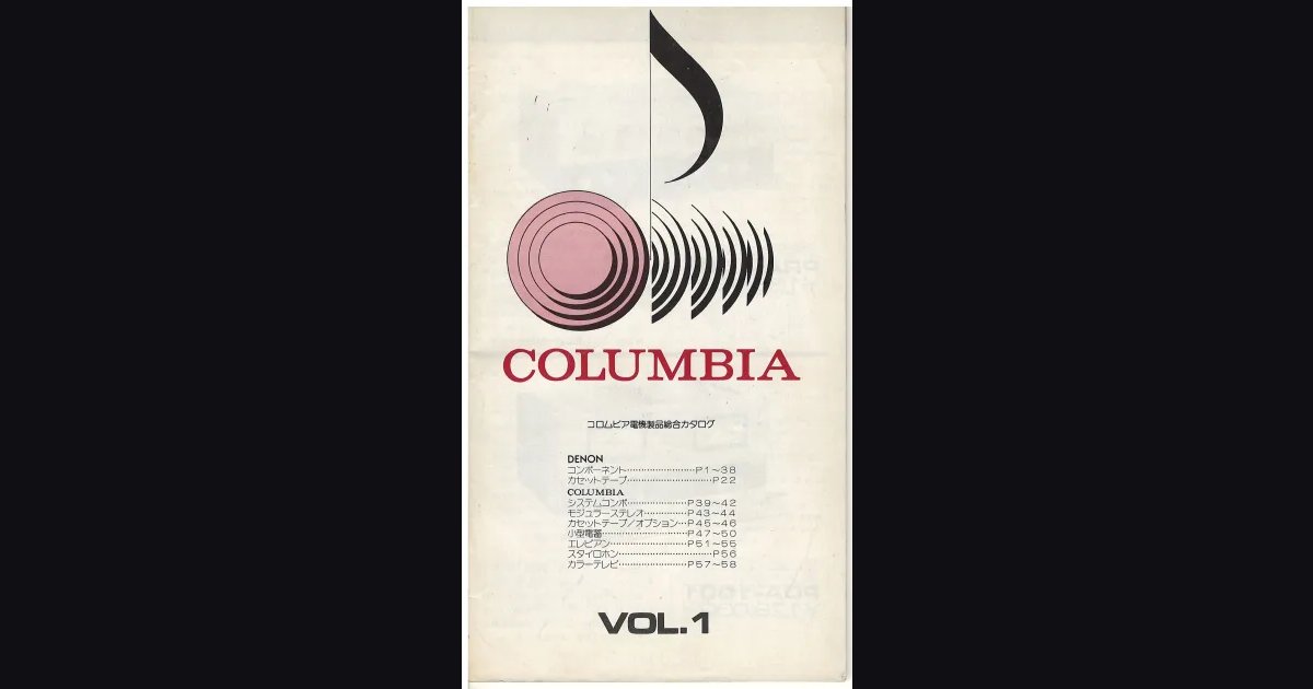 A saddle-stitched booklet - Nippon Columbia’s joint catalog VOL.1, June 1978. The bulk of it (pages 1-38) covers the DENON lineup: separate preamplifiers and power amplifiers PRA/POA-1001 and PRA/POA-1003, integrated amps PMA-850 and PMA-830 with class A DC-coupled circuit (no capacitors in the signal path), tuners TU-500/501/451, cassette decks DR-750 and DR-350, reel-to-reel deck DH-510, and cassette tapes DX5 and DX3. One spread is dedicated to DENON’s PCC (Non-Cross Talk Cross-Link) technology - a circuit design for minimizing channel crosstalk. The COLUMBIA section (pages 39-58) covers the Beat25V and Beat25 system combos, modular stereo components, cassette tapes, compact telephone sets, Stylaphone units, and color televisions.