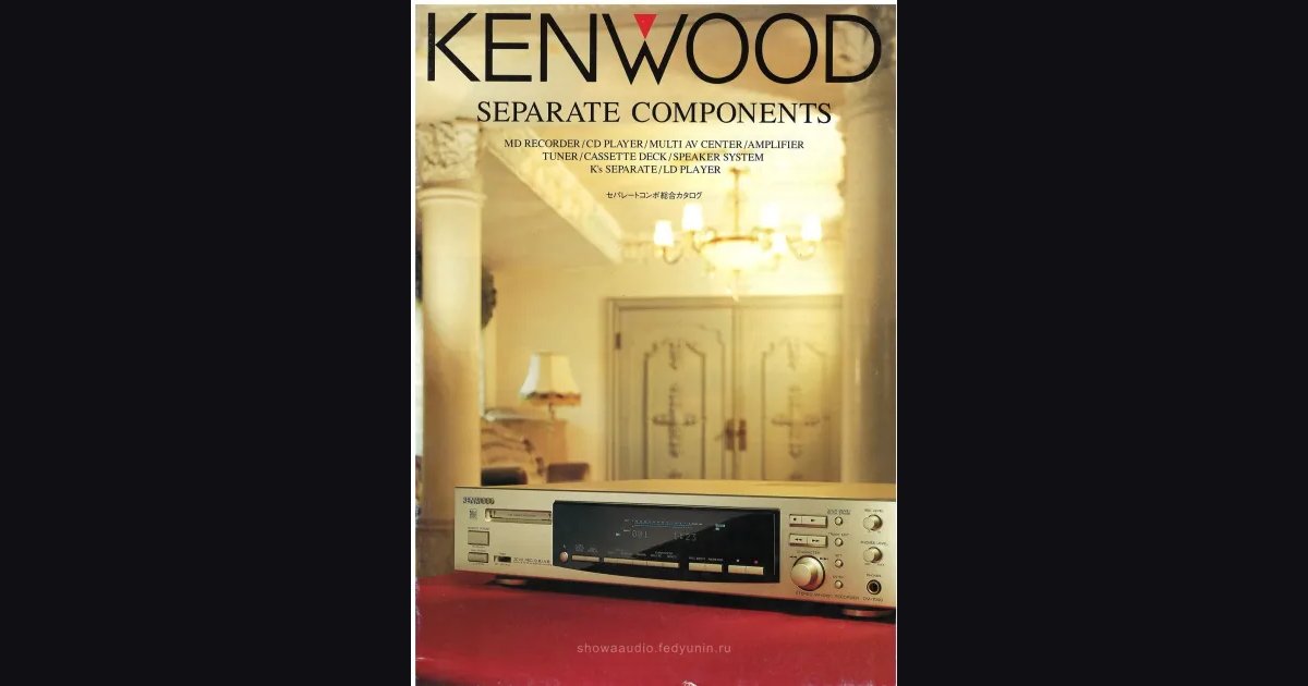 A staple-bound A4 booklet from KENWOOD, 24 pages covering the full separate components lineup from autumn 1996. The central theme is D.R.I.V.E. (Dynamic Resolution Intensive Variable Engine) for MD and CD - KENWOOD’s main pitch for digital recording and playback quality. MD recorders DM-7090 and DMF-7002, CD players DP-7060 and DPF-7002, AV centers KR-V990D with Dolby AC-3, integrated amplifiers KA-3080R and the K’s series (KAF-7002, KAF-5002), cassette decks KX-5080S and KX-7060S with Dolby S, tuners KT-3080, speakers LSF-777/555/333 - virtually the entire lineup from MD to speakers.