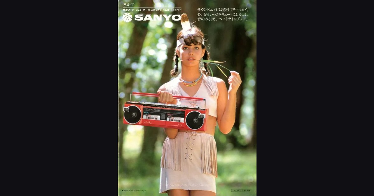 SANYO fall 1984 full-line catalog. Cover features Gina Nana with a red U4 MK III boombox. Inside: the full U4 portable lineup - U4 MK III (46,800 yen), U4 MK I, U4L, U4SR, U4SS, Town U4 and U4GP - plus the ff7 (49,000 yen) and ff2 combo boomboxes, and the ff8 with built-in turntable. Mini systems W07 MK II (125,000 yen) and W03, portable stereo players JJ series with auto-reverse and Dolby NR. A dedicated section covers home karaoke: PAT-K3MK II (67,000 yen), PAT-K5 (49,000 yen) and PAT-K100 (84,800 yen).
