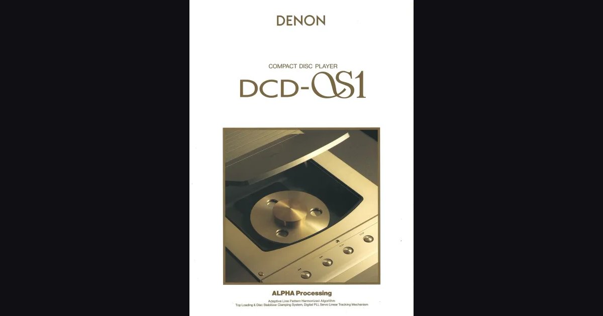5-полосный буклет с дополнительным заворотом про DENON DCD-αS1, абсолютный топ серии αSensitive и радикально более дорогой собрат DCD-αS10. На обложке золотой top-loader с прижимным disc stabilizer, на второй полосе - чёрный поэтический разворот с полнолунием над снежной горой и надписью “旋律の向こうにあるもの。” - “то, что за пределами мелодии”. Это манифест серии αSensitive: маленькое красное 愛 (по-японски читается “ай” / ai, “любовь”) рядом с логотипом - японская игра слов, которая дорисовывает к английскому “Sensitive” оттенок “S + ai”, то есть нечто вроде “чувствительный к любви”. Премиум-линейка DENON для аудиофилов и hi-end-пользователей, искренне любящих музыку. Вместо традиционного slot-loading - top-loading механизм с особым air seal на двери, защищающий оптический блок от паразитной засветки и внутренних вибраций. Внутри все фирменные технологии DENON в максимальной версии: ALPHA Processing на отдельном LSI, Advanced Sign-CO FA S.L.C. (продвинутая версия Lambda Super Linear Converter), 20-bit 8x oversampling digital filter и GIC 3rd-order аналоговый фильтр. Механика построена вокруг sand-cast extra-thick chassis - сверхтолстого песчаноформованного шасси с 6-мм алюминиевой экструзионной плитой снизу и тяжёлой стальной пластиной-усилителем, плюс 3-уровневая плавающая подвеска pickup-блока (литая база + oil damper + двухступенчатая пружинная развязка). Disc stabilizer - точёный, латунный с деревянными вставками; pickup-привод на T-образном якоре с рубиновыми подшипниками; шпиндель - cogless-мотор с цельным 6-мм валом. По выходам - три системы цифровых I/O (TOS-Link, BNC, COAXIAL) плюс AES/EBU балансный XLR на выход и аналог через RCA + balanced XLR. Цифры подтверждают: SNR 120 дБ, КНИ 0.0015%, масса 20 кг, цена ¥500,000 без налога - в 2.7 раза дороже DCD-αS10 при том же годе и серии. Это вершина того, что DENON делал в CD-теме.