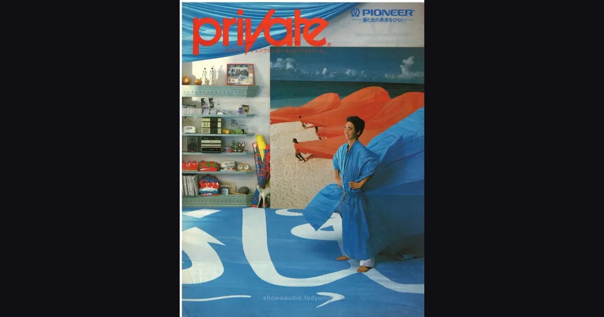 Складная брошюра линейки PIONEER PRIVATE - компактные шелф-компоненты глубиной 21 сантиметр, влезающие в стандартный книжный стеллаж. Десять системных наборов от топового S100W за ¥711,500 до бюджетного S30, плюс цветная версия S30P. Под Private Furniture два типа мебели - стеллаж и вагон. В аксессуарах наушники SE-L55 в четырёх цветах, микрофоны под суббрендом MED, сабвуфер IS-W5 и фирменные кассеты Pioneer пяти серий.